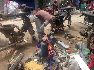 The tin sheets got blown away and though collected by the kids and stacked safely they could not be put to much use because they were badly bent, rusted and cracked.The bathroom roofs too had almost all been blown away and after dismantling the remaining few it was found that not much could be saved or be put to use as the sheets were badly rusted and started crumbling.